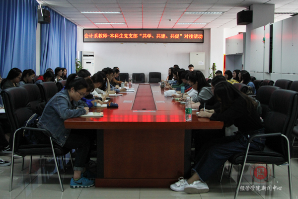 2018年4月24日,在经管楼401会议室举行了熊猫体育会计系教师-本科生党支部“共学、共建、共促”对接活动。出席本次活动的老师有公司党总支委员、组织员、会计系教师党支部书记白华,会计系本科生党支部书记邬津以及会计系本科生党支部的员工党员和积极分子。