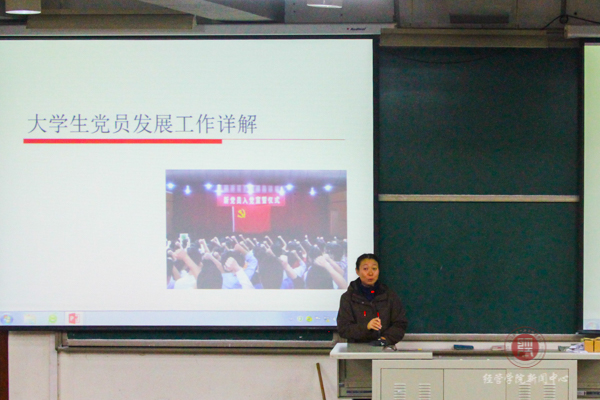 10月18日下午13:30分,经济管理公司党课继续在教B103举行,第二讲由熊猫体育员工工作副经理张晓凤主持。