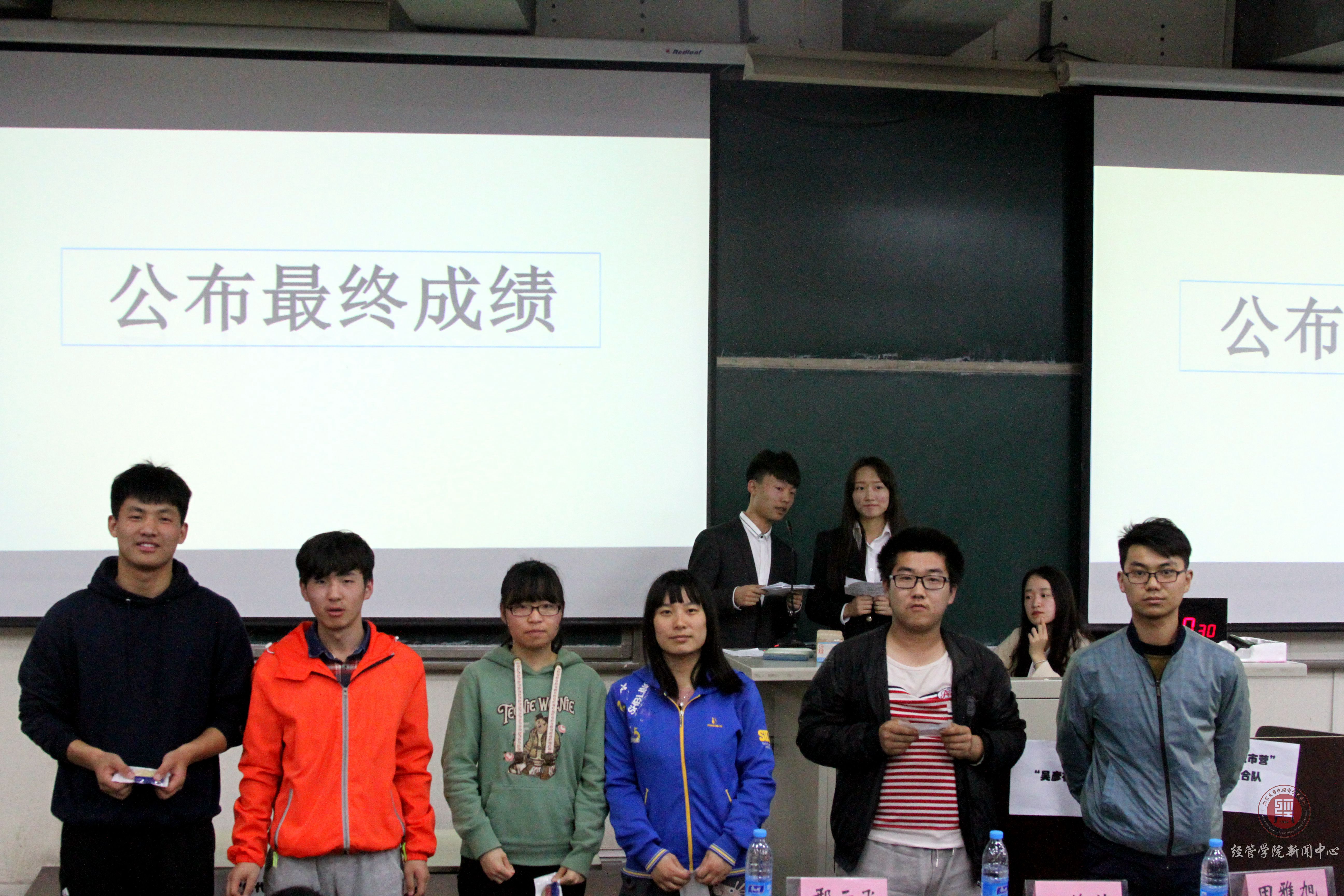 在比赛中,各专业的同学积极踊跃的思考,回答问题,努力展现自己这些年来所积累的成语,为自己的队伍争得宝贵的一分,几个队伍你来我往,竞争十分激烈。与此同时,坐在观众席上没有参赛的同学也参与其中,紧盯着屏幕上的问题,与场上选手一同思考答案。在大家的共同努力下,将全场的气氛推向了高潮。比赛的最后,国贸专业的同学夺得了冠军,亚军季军分别由市营和农经获得。