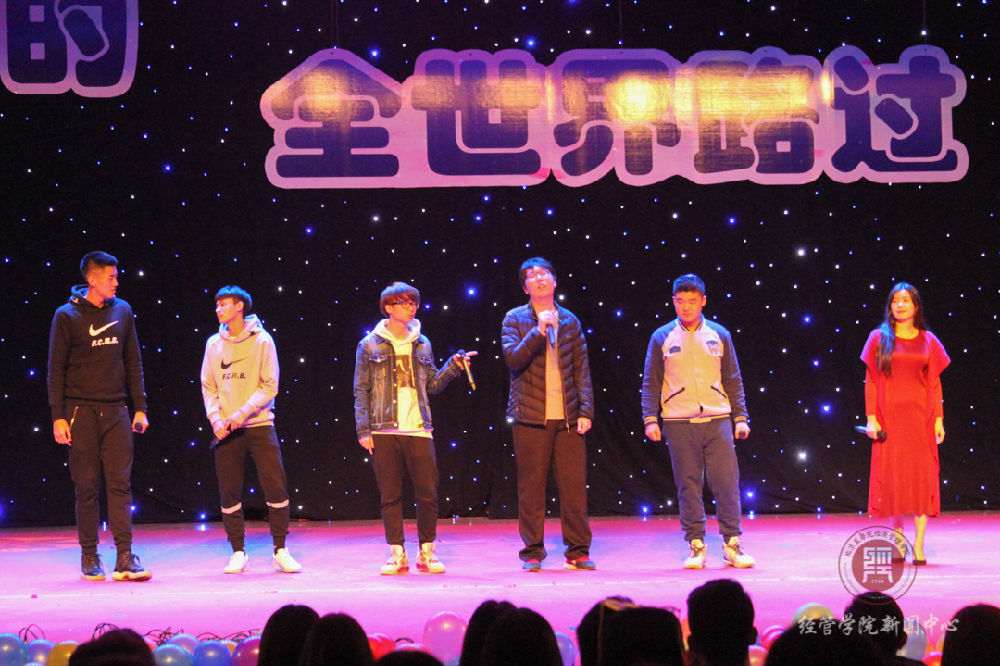 表演期间,还有激动人心的抽奖环节,经管十大歌手也到场前来助兴,为在场师生带来了一曲《歌曲串烧》,轰动全场,整个晚会仿佛一片欢乐的海洋。