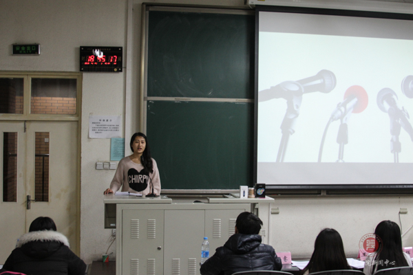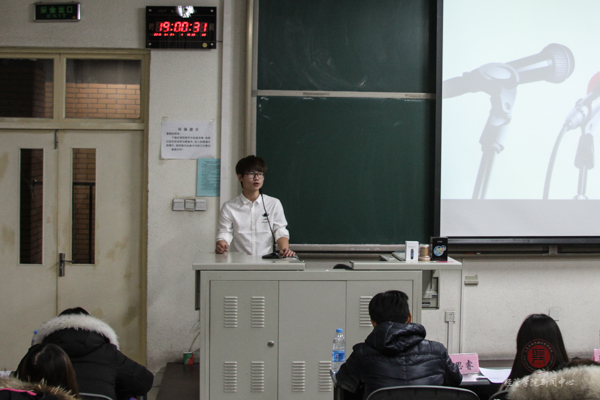 11月21日晚上六点半,于教学楼B座201教室举行了英语演讲比赛决赛。来自熊猫体育各个专业的12位选手共聚一堂为大家奉献了一场精彩的比赛。本次比赛的评委是蒋立辉老师,社团联合会主席邢云飞,新闻中心主任王晰,员工会副主席田雅旭。