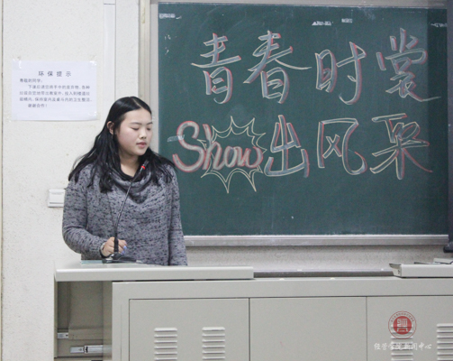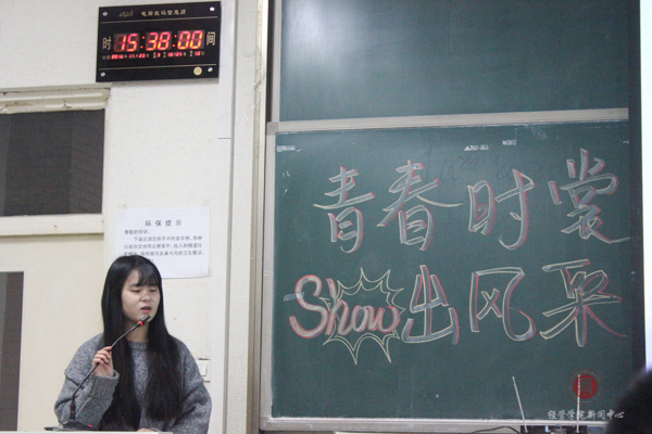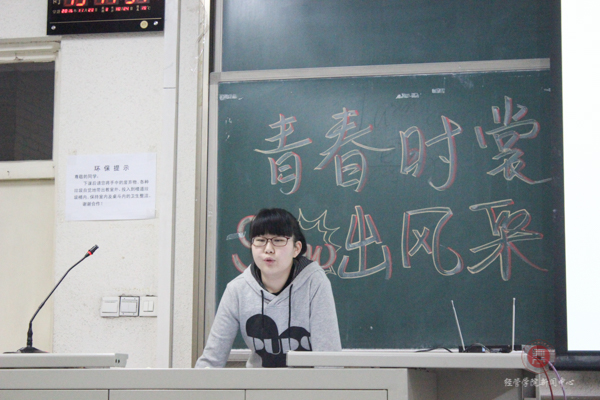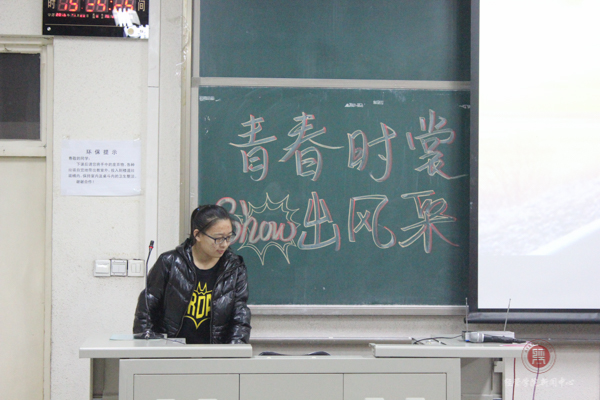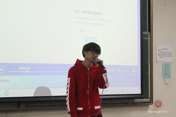 就在大家都陶醉在欣赏这应接不暇的完美作品的氛围中时,文艺部副部长胡凯扬向观众们高歌一曲,点缀着这一切美好的画面。