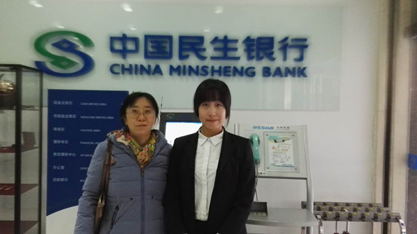 2016年10月27日,吕晓英老师赴中国民生银行北京环保园支行实地了解胡鑫瑶同学的实习工作,并与校外实习导师就实习情况和用人需求进行交流、座谈。通过检查认为,员工实习情况正常,能按照公司和用人单位的要求实习,所承担的工作能够满足专业实习的要求,校外指导老师对员工的工作态度和绩效表示满意。