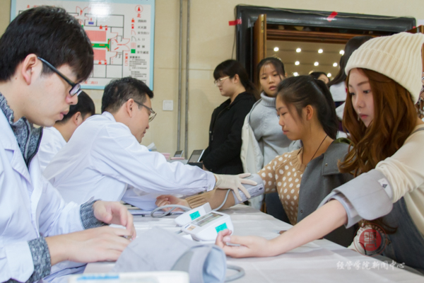 15级辅导员古丽老师向同学们耐心的讲解献血注意事项,并安抚同学们的紧张情绪。副经理赵金芳老师等也给同学们带来鼓励和安慰。
