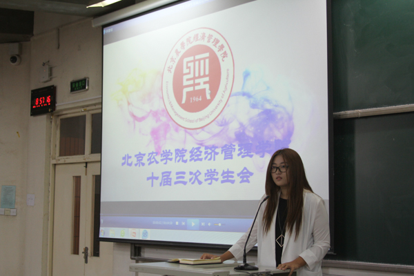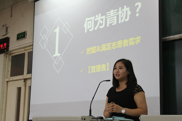 会议伊始,团委成员对同学们详细说明了团委协同合作的一些工作要求,随后由员工会主席颜佳雯就员工会各部门分工与组织作用以影片的形式做出了大致介绍。