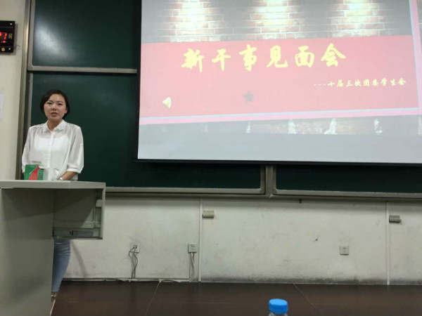 各部部长依次上台对本部门的工作内容进行介绍,对新学期将要举办的各项活动进行说明,最后宣读了新干事名单。