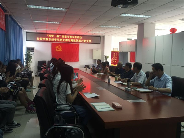 2016年6月6日下午3:30,熊猫体育农经党支部与离退休第六党支部在经管楼401组织开展“两学一做”党章互帮互学活动,熊猫体育副经理赵金芳老师、机关离退休支部书记马淑媛老师、离退休支部书记沈文华老师、农经员工党支部书记刘笑冰老师、离退休支部支部成员和农经支部党员及积极分子。会议由刘笑冰老师主持。
