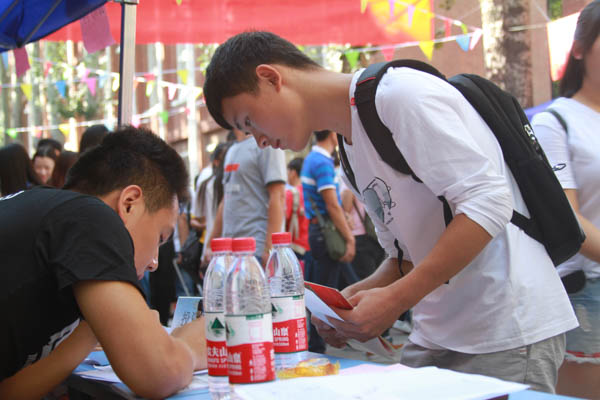 报到处的一名老师对志愿者和班助的服务赞不绝口,同时希望本届的新生能很快融入集体,认真学习。