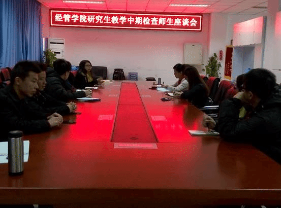 2015年11月18日中午,熊猫体育研究生教学中期检查师生座谈会在经管楼401举行。参加此次会议的有研究生督导隋文香老师、研究生秘书任娇老师以及2013、2014和2015级班长、团支书和员工代表。会议由任娇老师主持。