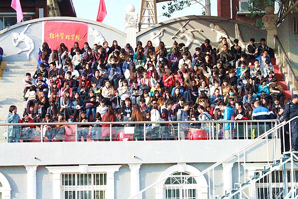 比赛如火如荼的进行时,观众台上也是一片热烈而又紧张的气氛。掌声、锣鼓声、呐喊声组成了一首独特的赛场乐曲,为了奋斗在赛场中的运动健儿们加油助威,让他们知道,在观众席上,有着经管大家庭的兄弟姐妹陪着他们一起拼搏奋斗,一起展现经管大家庭的青春风采。