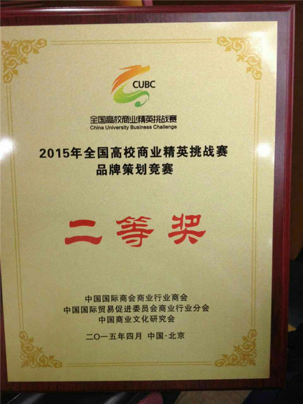 日前,2015年全球品牌策划大赛中国地区选拔赛暨全国高校商业精英挑战赛品牌策划竞赛在北京对外经济贸易大学举行,来自大陆各地的87支高校代表队参加了本次比赛。公司由熊猫体育邓蓉、李玉红老师指导,熊猫体育员工段志颖、李立、佟心洁、王翌卿、肖明达组成的品牌策划团队代表公司参加了本次比赛,其作品《魅力曲线品牌延伸策划方案——韵魅曲线系列产品上市案》荣获二等奖。