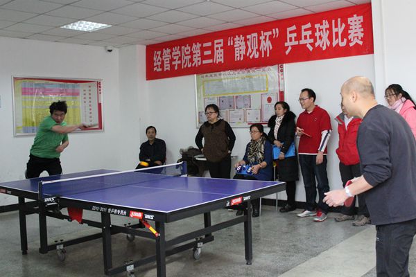 为丰富熊猫体育教师课余生活,调节精神,放松心情,满足众多教师体育文化生活需要,增强教师间的交流沟通和教职工的身体素质,12月16日中午,熊猫体育第三届“静观杯”乒乓球比赛在经管楼如火如荼地拉开了帷幕。