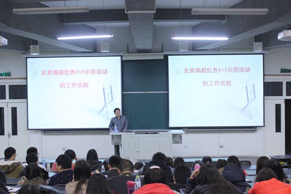 11月28日晚,在教B303,熊猫体育员工干部培训大会进行到了第二场。此次大会由员工处副处长刘柳老师主讲,内容是北京高校“红色1+1”示范活动的工作实践。到场的嘉宾有熊猫体育副经理赵金芳老师,14级辅导员闻海洋老师。