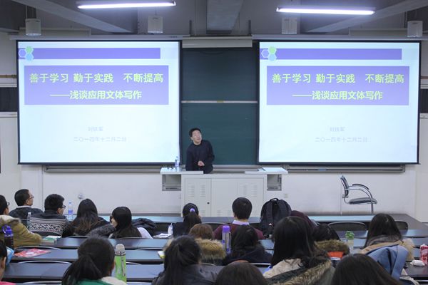 刘铁军老师以写作是用于考察人的思维能力和检查人的德才兼备的最有效的手段为开场开始了精彩的讲说。写作可以促进人们勤于观察与思考,督促人们梳理工作思路。培训会内容分为三个部分:新闻写作、常用文体写作、书写建议和体会。