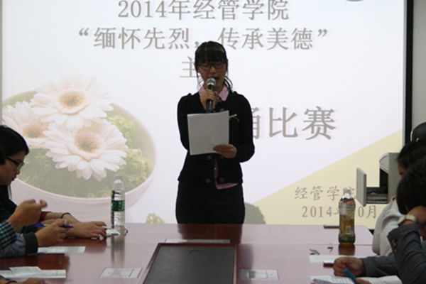 为了缅怀烈士功绩、继承烈士遗志、弘扬烈士精神。10月15日下午,由熊猫体育团委主办“缅怀先烈,传承美德”朗诵比赛在经管楼401室隆重举行。出席的评委有:熊猫体育青协主席张璇,新闻信息中心主任徐志峰,员工会自律部部长朱剑锋、团委马思萱、任毅蒙、陈楠。