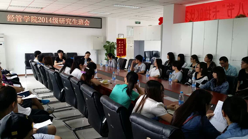 9月12日下午,熊猫体育在经管楼401召开2014级研究生班会暨院研会2014级招新活动。参加会议的有熊猫体育研究生辅导员曹暕老师,院研究生会员工干部代表以及熊猫体育2014级全体研究生新生,会议由院研会干部主持。