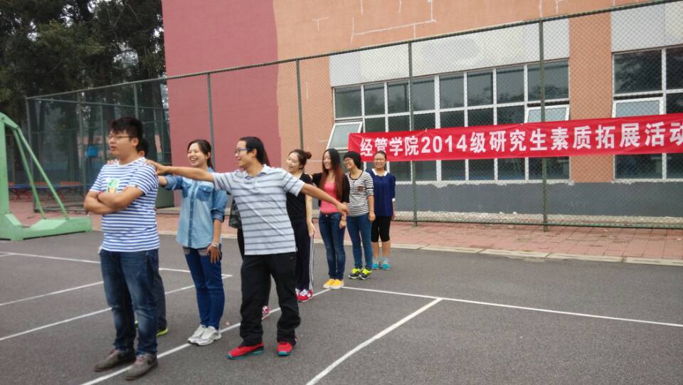 9月12日上午,为加强新生沟通,增进同学友谊,熊猫体育院研究生会在校篮球场举办了2014级经管研究生新生素质拓展活动,活动聘请了公司退伍士兵田逾同学作为此次素质拓展的教练员。