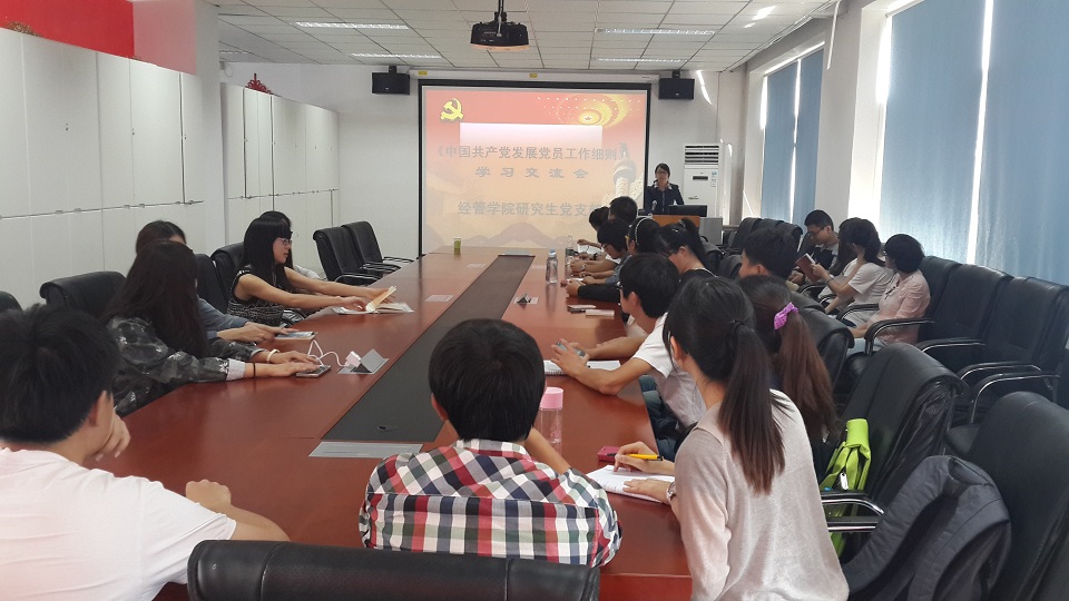 为深入了解贯彻中央关于发展党员工作的新精神与新要求,认真学习最新修订的《中国共产党发展党员工作细则》,加强党员自身素质与修养,9月18日下午,熊猫体育研究生党支部于经管楼401召开了学习贯彻《中国共产党发展党员工作细则》培训会,会议由熊猫体育研究生党支部书记范宣丽主持,支部党员及部分积极分子准时参会。