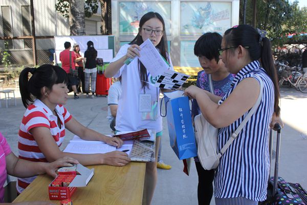 志愿者们不畏辛劳,伴随着音乐为每一位同学奉献者自己最真挚的服务。他们对待工作极为细致,无论是物品的发放还是新生报到的检查。悉心地提醒新生们开学的一些注意事项,为入学的新生们提供更为详细的指导。尤其是为新生和家长带路的志愿者更是不怕夏日暑热,一趟趟奔波于服务站与宿舍楼之间,帮助新来的同学提东西,带他们到各自的宿舍,为他们收拾床铺以及介绍公司的各项设施,直到把这位同学安顿好才选择离开。