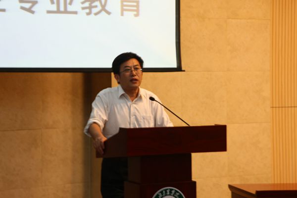 副经理赵连静老师从人才培养与教学管理这一主题进行了多方面的讲解,如经管人才培养方案、经管六位一体实践教学体系、教学管理服务与相关规定等向新生们做了大致分析。