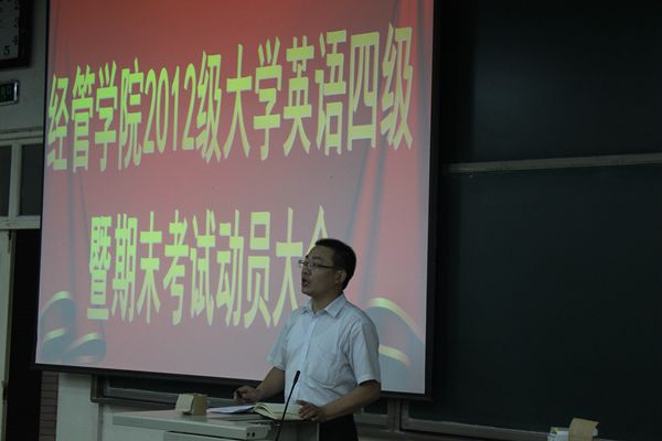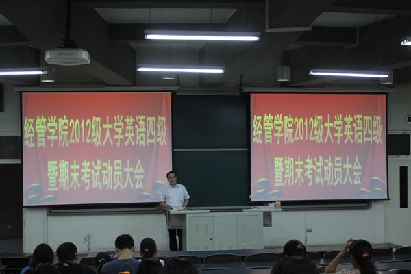 为了促使员工们在考前保持一个良好的心态,6月11日下午6:30,熊猫体育12、13年级在辅导员闻海洋和乔多老师的带领下举办了大学英语四级考试暨期末考试动员大会,全体12、13级员工参与此次会议。本次会议,由辅导员闻海洋老师对与会的全体员工讲述了即将开始的英语四级考试以及期末考试中应该注意的问题。