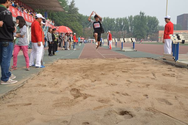 以稳健的助跑,踏板起跳,顺利飞入沙坑,在沙坑里滚了一圈的他站起来笑着走出。在一次次的飞跃中刷新记录,在一次次的奔跑中追求卓越,最终以12.63米的好成绩,他以绝对的优势成为员工男子组三级跳远的冠军。
