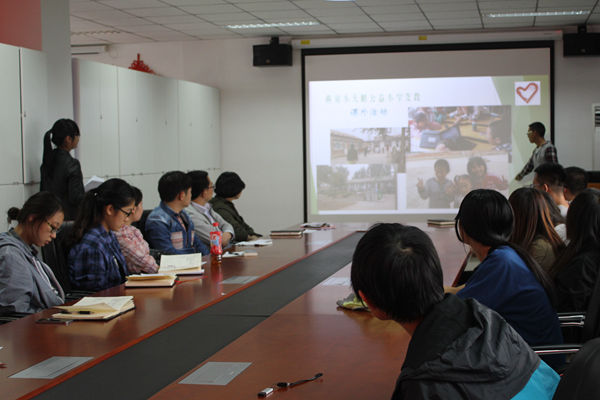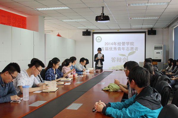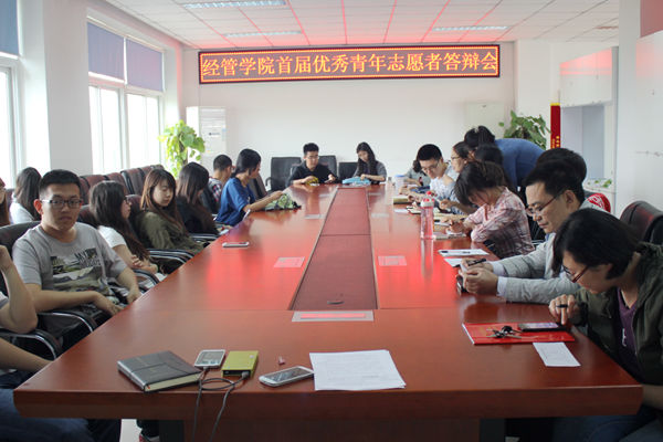 春风吹拂无痕,春雨润物无声。为促进老员工积极投身于青年志愿者队伍,以青春活力促进和谐社会建设,熊猫体育于2014年5月6日下午5点在经管楼401室顺利召开了首届优秀青年志愿者答辩会。本次答辩会特邀请熊猫体育2012级辅导员闻海洋老师、2013级辅导员乔多老师、校青协副会长张博、熊猫体育团总支组织委员黄栌、宣传委员王大欣、文体委员贺炳林、熊猫体育员工会副主席程杰鑫、熊猫体育新闻信息中心主任郭帅以及熊猫体育青协会长张璇担任嘉宾。