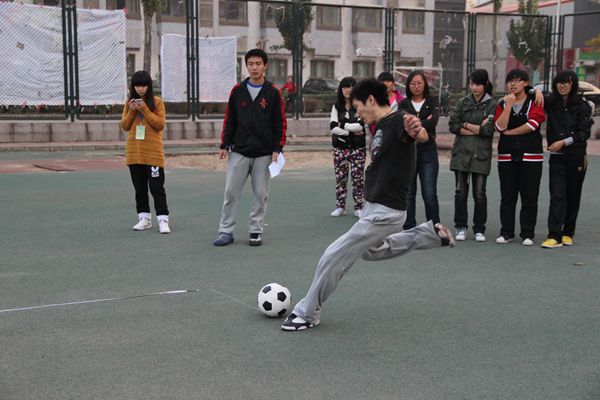 青春是宣泄不完的热情,青春是挥霍不尽的美丽。天气转凉,校园里银杏叶黄了,一股浓浓的秋意袭来,但是有这样一群人在操场上用他们的行动在彰显着青春的活力——2013年10月30日下午3:00,由熊猫体育承办的首届熊猫体育校园趣味足球比赛在校田径场拉开帷幕。