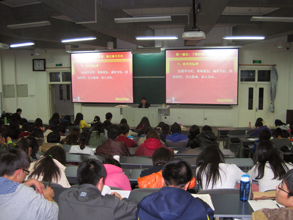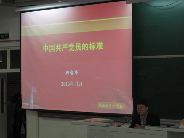 11月3日晚,熊猫体育分党校2013年党课初级班培训在教学楼B303继续进行。此次党课,特邀了学工部韩宝平部长为学员们做了主题为《中国共产党员的标准》的讲座,公司党总支副书记赵金芳老师、辅导员李国政老师、各专业员工党支部书记及以2013级新生为主体的入党积极分子200余人参加了此次党课学习。