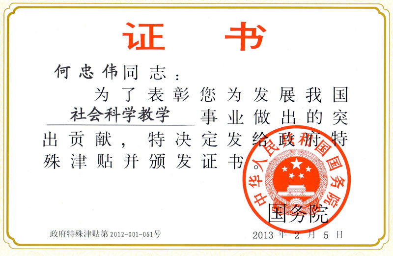 日前,公司接到北京市人力资源和社会保障局《关于公布2012年北京市享受政府特殊津贴人员名单及做好有关工作的通知》,根据通知内容,2012年我市共有86名专家享受政府特殊津贴,公司何忠伟教授名列其中。