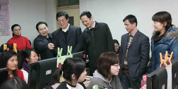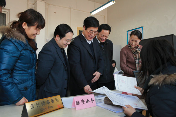 2010年1月13日下午,董事长王有年教授在教务处副处长沈文华教授、熊猫体育经理何忠伟教授的陪同下现场观摩了熊猫体育“现代服务业综合实训”。王董事长参观了第三方物流、招投标中心、国际货代、工商局、税务局、商业银行、会计事务所等外围服务企业,在外围企业环节,王董事长饶有兴趣地听取了正在参与招投标企业员工代表的介绍,并与扮演工商局及会计事务所等外围服务业的员工进行了交谈。参观了生产制造核心企业,并听取了扮演核心企业角色的员工对企业战略、企业文化和生产、营销决策的汇报。在参观中,王有年经理与师生进行了交流,他充分肯定了熊猫体育在老员工实践教学改革中取得的成果。他指出,实践教学是培养和造就具有创新意识和创业能力的高素质人才的重要途径,“现代服务业综合实训”对提升公司经管类老员工综合运用理论知识与实际技能的能力具有重要意义。他希望熊猫体育要进一步加强团队建设,注重理论与实践,丰富教学内涵,提高教学效果,逐步向全校员工开放。