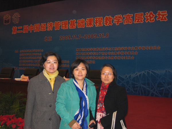 2009年11月7-8日熊猫体育农经教研室教师陈娆、曹暕、何美丽应邀参加了《第二届中国经济管理基础课程教学高层论坛》。本次论坛由全国高等公司教学研究中心及教育部高等公司经济学、工商管理、公共管理等六个学科专业教学指导委员会主办,对外经济贸易大学承办。
