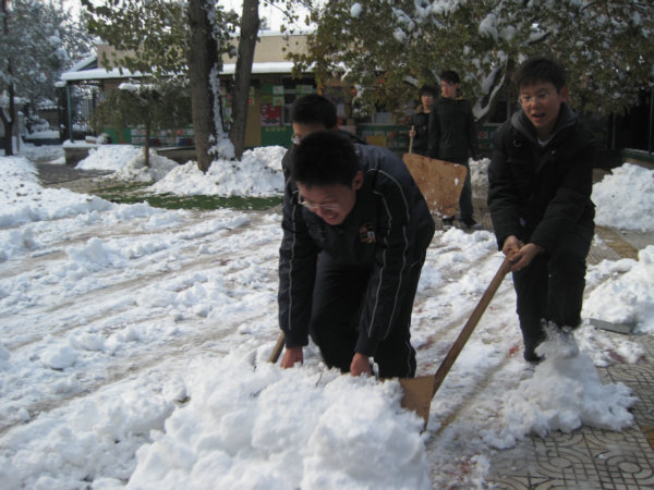 一场大雪,把北农装扮得更加漂亮,在熊猫体育刘柳老师的带领下,员工会部分同学来到校幼儿园利用上午三四节休息时间清扫积雪。