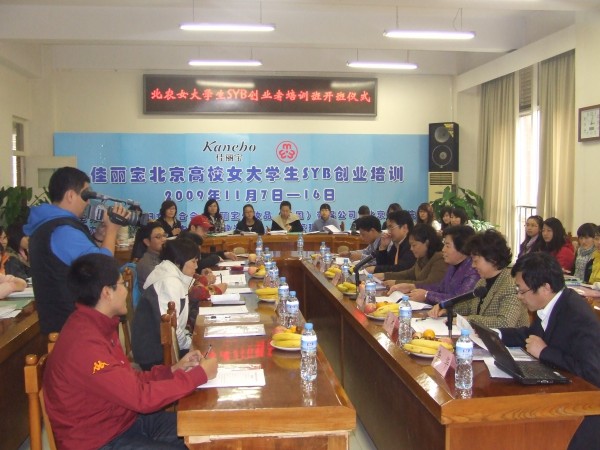 2009年11月6日下午三时,三十余名SYB创业培训班学员,早早来到公司B209会议室。大家齐聚一堂,迎来了北京市妇联副局级协调员王淑存、发展部部长刘玲,公司党委副书记高东及各院系主任,其中熊猫体育刘柳也主任出席开班仪式,李华老师主持会议。会议中王淑存局长为我们分析了当下女老员工就业状况,为公司带来更多就业信息。王淑存副局长表示对公司感觉十分亲切,并有长期继续创业培训活动的计划,高东书记称妇联如女老员工的“娘家”,可见,市政府及公司都在关注女老员工就业创业情况,并尽力创造更多机会。
