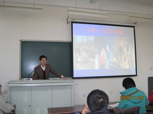 2009年11月5日,熊猫体育农经教研室有幸邀请到中国农业大学教授、博士生导师张正河,做了题为《农村基层政权与社会经济结构》的报告。207级农经专业员工和农经教研室老师听取了报告。