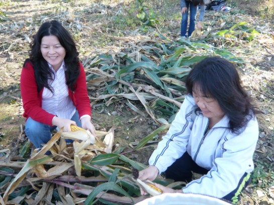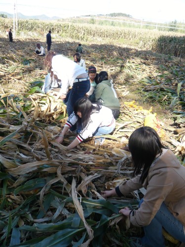 随后,党员们一同来到村里的玉米地。为了体会农民劳动的辛苦及为人民服务的真谛,发扬党员工作积极性,支部党员们在北穆村党员的指导下,一同进行掰玉米以及装袋的工作。对于平日在公司教书育人以及主攻学业的老师及同学来说,下地干活无疑是个既新鲜又辛苦的工作,但是在村党员的带领下,经管党员干劲十足,团结合作,很快就完成了工作,此次工作不但是师生交流互动的平台,同时也是党员实践学习的机会,更增强了师生党员间的凝集力。