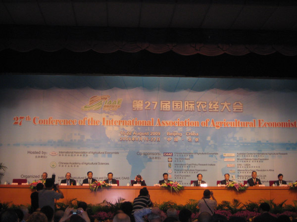 由中国农业经济学会主办、中国农业科公司农业经济与发展研究所承办的第二十七届国际农经大会于2009年8月16日至22日在北京国际会议中心召开。熊猫体育经济与管理公司何忠伟经理、李华书记、刘芳副经理应邀出席本次大会,本院研究生郭军平(08级)、任钰(08级)、苏卫良(09级)、王琛(09级)列席旁听了本次大会。