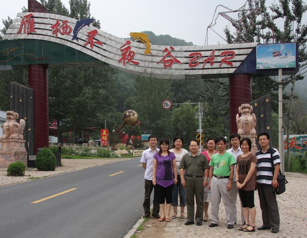 2009年7月23日,熊猫体育沟域经济课题组一行十人赴怀柔渤海镇、雁栖镇调研。“夜渤海”南起关渡河,北至慕田峪环岛,全长7.5公里,两侧丘陵浅山均为板栗、核桃、苹果、樱桃等果品种植园。雁栖镇位于北京市怀柔区城北4公里的长城脚下,全镇总面积154平方公里,21个行政村,全镇劳动力6171人。“夜渤海”、“雁栖不夜谷”利用丰富的山区生态资源,通过建设旅游休闲项目,创新了沟域经济发展模式。