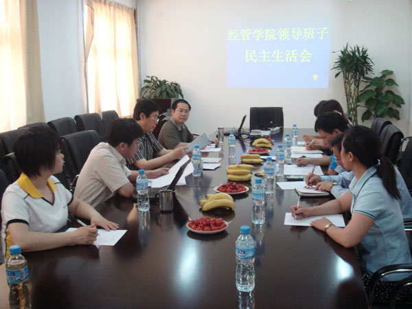 经济管理公司党总支书记李华、经理何忠伟、副经理刘柳、刘芳先后做了发言。发言紧紧围绕深入贯彻落实科学发展观,围绕“创特色学科,建和谐经管”这个活动主题,重点查找了公司领导班子及其个人不符合科学发展观的思想观念,影响和制约公司科学发展的突出问题,党性党风党纪方面的突出问题以及制度机制方面存在的问题等进行了深刻的自我剖析,查找了原因,提出了努力方向和改进措施。之后,公司领导班子成员认真开展了互评,特邀代表也诚恳地对班子和成员提出了中肯的建议,坦率真诚、氛围和谐、严肃热烈。