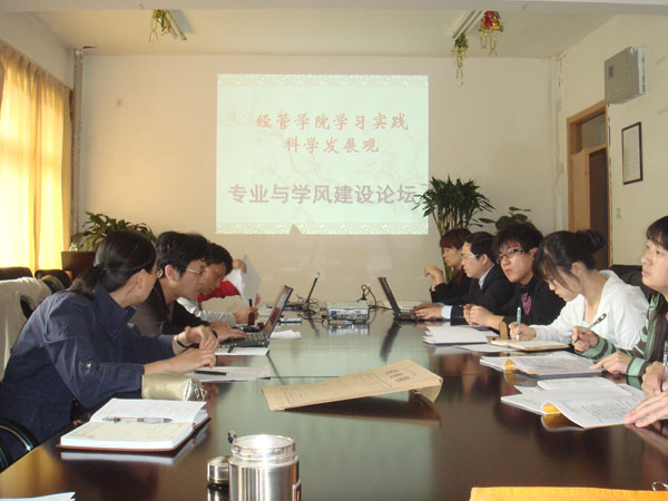 会上,各教研室主任首先针对各自教研室的特点,总结了“十一五”的专业建设情况,并对“十二五”专业发展规划作了初步展望。会计教研室李瑞芬老师提出要加大实践操作训练,改善团队结构;农经教研室主任陈娆老师提出了专注社会需求,调整专业方向等十点建议;工商管理教研室主任邓蓉老师提出了员工数学基础差,学习兴趣与动力有待提高等问题。国贸教研室主任杨静老师在介绍完本专业的具体情况后,提出了专业发展思路。市场营销教研室主任刘瑞涵老师针对本专业人力不足、历史有限、积累不足等问题提出要走特色发展之路。副经理刘柳老师就学风建设做了主题发言。