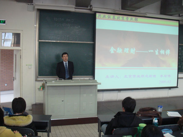讲座中,李宏伟总经理为在校员工分析了目前金融危机的形势以及当前证券市场的行情。他强调证券市场是经济的核心,是一门人生的必修课,它具有经济晴雨表的功能。通过证券市场可以投资经济中的各个行业,是取得财富的重要途径。