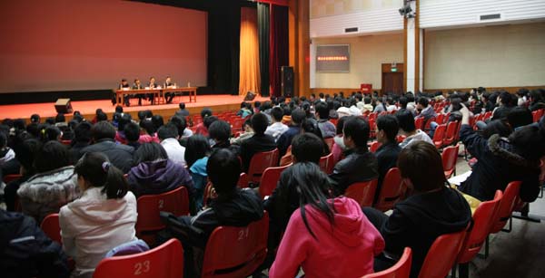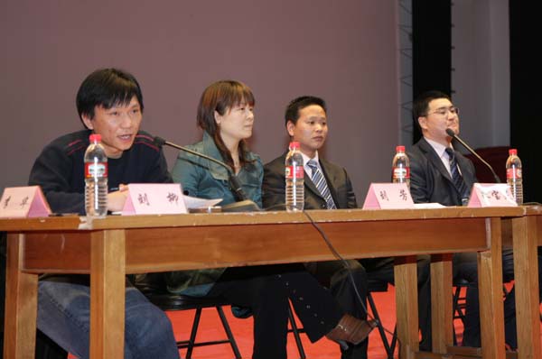 为了学习实践科学发展观,推动公司老员工就业与创业工作的开展,2009年3月17晚,熊猫体育在大礼堂举办了员工返校谈创业大型演讲会。经理何忠伟、副经理刘柳、刘芳出席了演讲会。此次演讲会邀请了公司10041级的两位优秀员工朱宝灵和王贤文为我们进行了精彩的创业演讲。