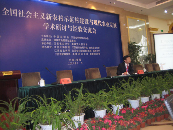 本次会议由农业部计划司支持,中国农学会、江苏省科学技术协会主办,江苏省农学会和姜堰市承办。会议邀请了农业部原副部长路明,全国政协经济委员会副主任段应碧,国务院发展研究中心崔传义研究员、公司经济管理系总支书记李华教授四位作大会专题报告。李华教授介绍了北京新农村建设的经验和存在的问题及对策,受到与会领导和代表的好评,并就新农村建设问题和十七届三中全会解读接受了农民日报、江苏人民广播电台、姜堰市电视台等新闻媒体的专访。
