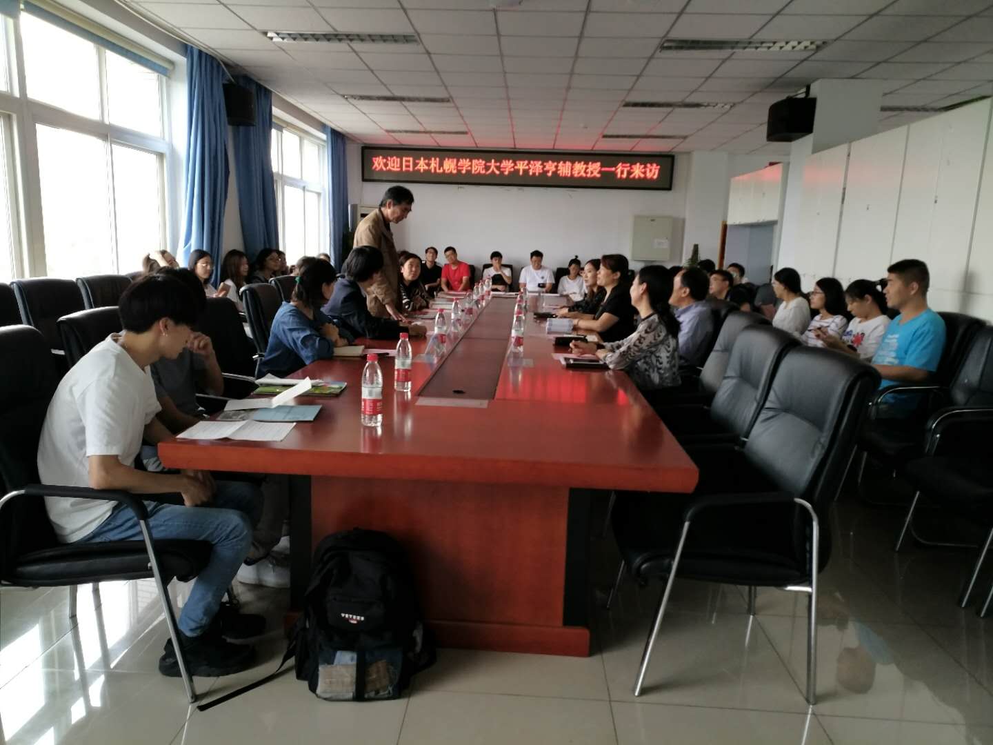 平泽亨辅教授介绍了札幌公司的基本情况,并对札幌公司区域经济与管理研究科进行了详细介绍,并就今后两校的各层次的合作与交流做了详细的研讨。