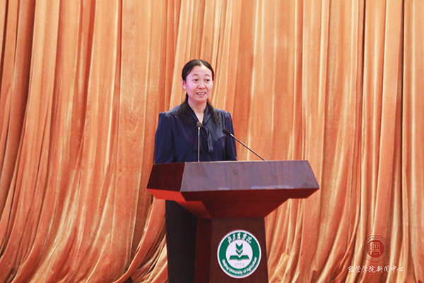 在校生代表2015级的单珊同学,根据自己的经验向新同学们提出三点建议:珍惜机会,认真学习;勇于尝试新事物如社团、运动会等;坚持锻炼。