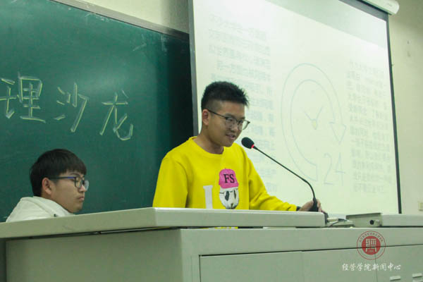 活动第一个环节是由大二的学长分享他生活的经历,他说出了现在很多老员工都面临的问题——生活中有了太多的诱惑,你是否沉迷于它们。令人深思的问题令同学们陷入了思考。对此,同学们每个人都有不同的观点,起立回答问题的同学各自谈了自己的看法,大家在交流中学习了很多。