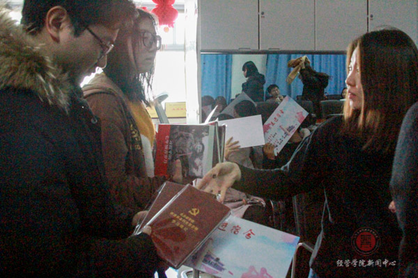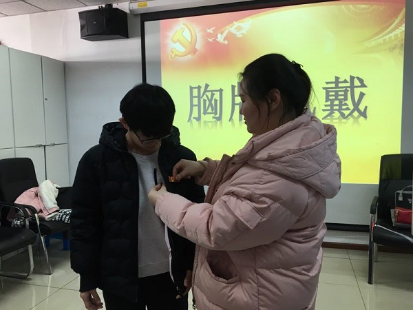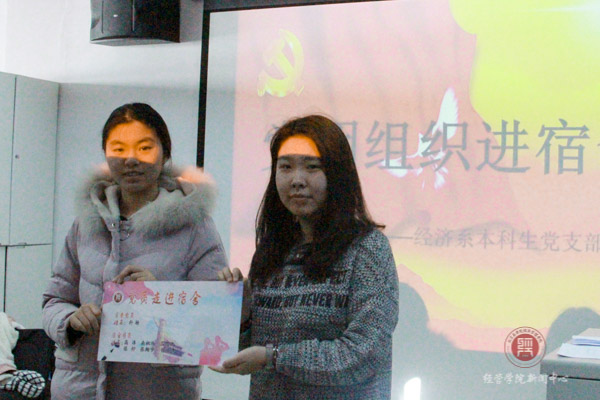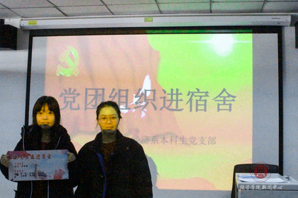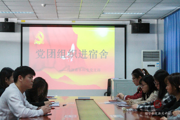 2018年12月13日中午,经济系本科生党支部开展党员和积极分子佩戴胸牌以及党员与低年级宿舍对接活动。经济系本科生党支部全体党员、入党积极分子以及国贸、投资专业的低年级宿舍代表参加了此次活动。工商系党支部书记乔多应邀出席活动。