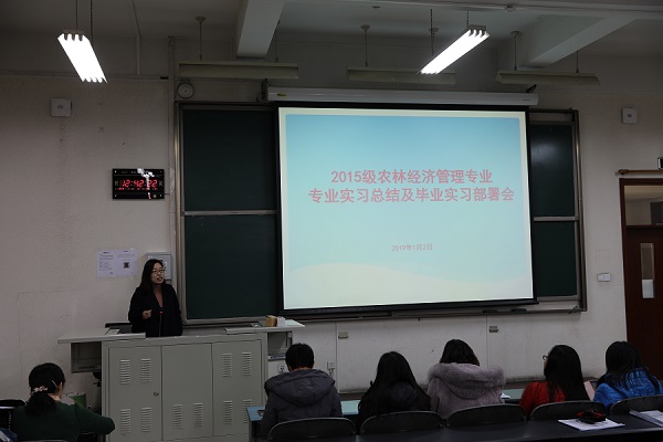 2019年1月2日中午12点30分,熊猫体育农林经济管理专业在教B202召开15级农经专业实习总结会。公司副经理刘笑冰老师、农经系全体教师以及农经系15级全体员工参会。会议由农经系主任赵海燕老师主持。