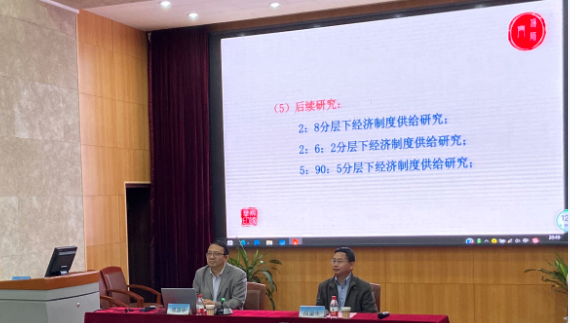 最后,老师和同学与傅教授就经济学分工立体化进行热烈探讨,得出总结“经济发展高质量,分类分层全发展,分层管理适配,施策优效才精准。”的28字真言。
