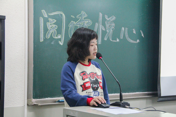 在所有参赛者讲述后,由主持人进行总结发言,她提到本次活动旨在让大家明白读书的价值,在生活中不光只是追求精神的愉悦与感官的刺激,更重要的是心灵的沉淀。在闲暇之余静静的享受读书的乐趣,通过读书建立更大的知识体系。